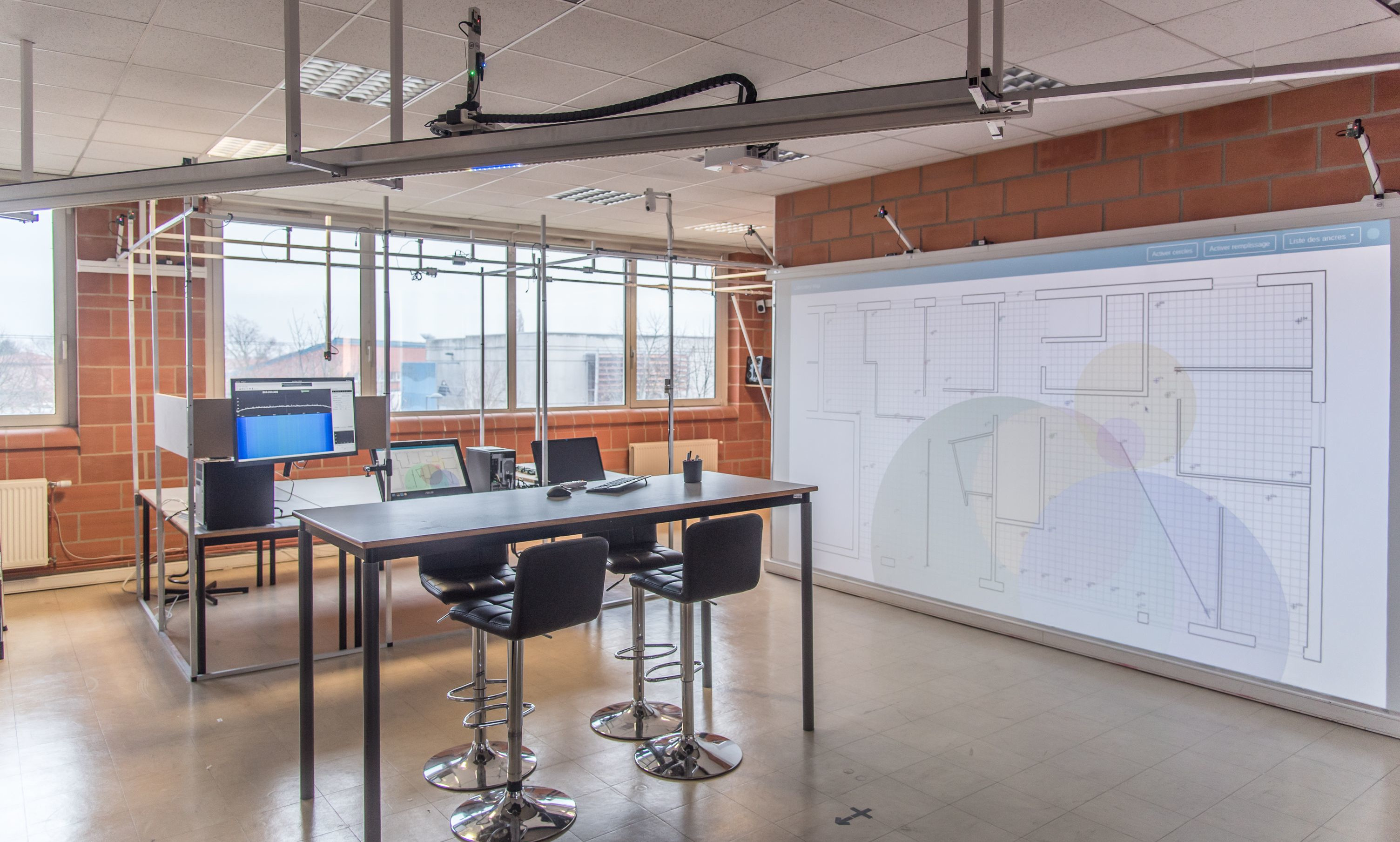 When the researcher/testbed user is on site, he benefits from several devices for viewing the results in real-time thanks to a 4m wide screen and a virtual reality headset.