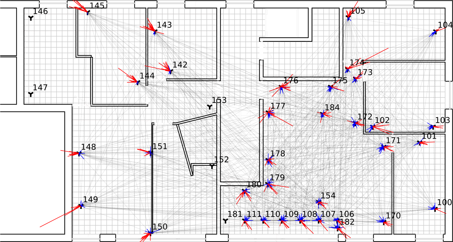 - fixed and mobile nodes, all true positions known with a cm-level precision,